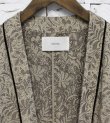 ベージュベースのシックな色合いが魅力のジャガード生地を使用したガウン。 ゆったりとしたシルエットで袖口やポケット 前立ての接ぎ目部分にあしらったブラウンのベロアパイピングが目を惹く1枚。 シンプルなスタイリングに羽織るだけでこなれた印象に。 しわになりにくく、さらっとした質感なので旅先にも重宝するアイテムです。