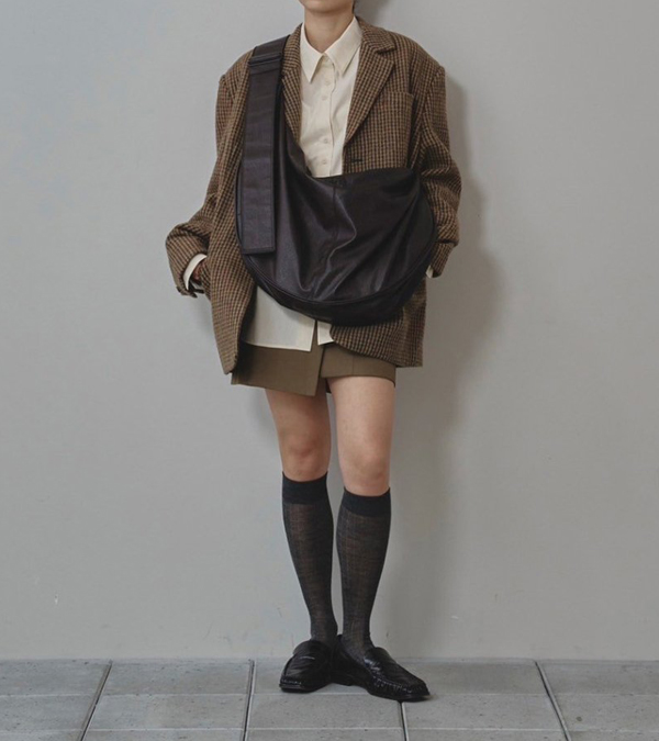 マチ付きでA4サイズも収容可能なサイズ感のボディと太めのショルダーとのバランスが絶妙なアイテム。