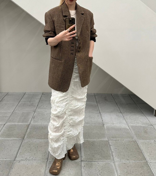 シンプルなスタイリングに取り入れるだけでこなれた印象に。