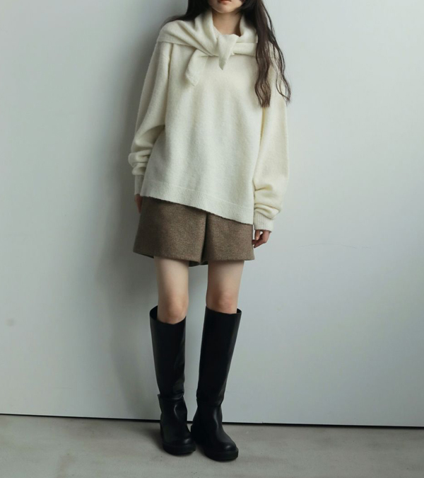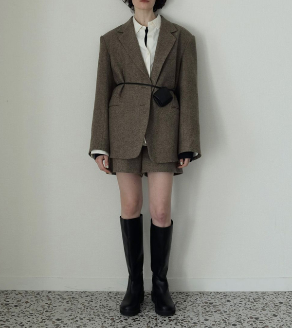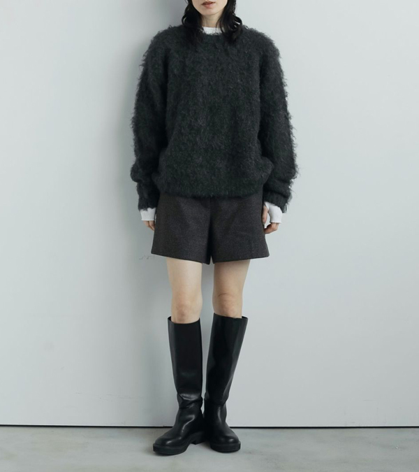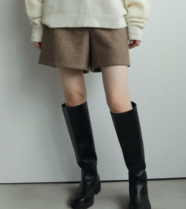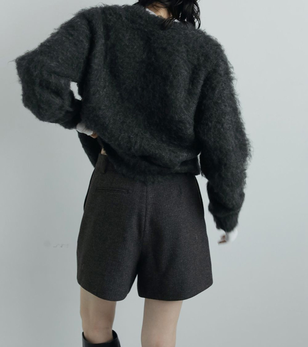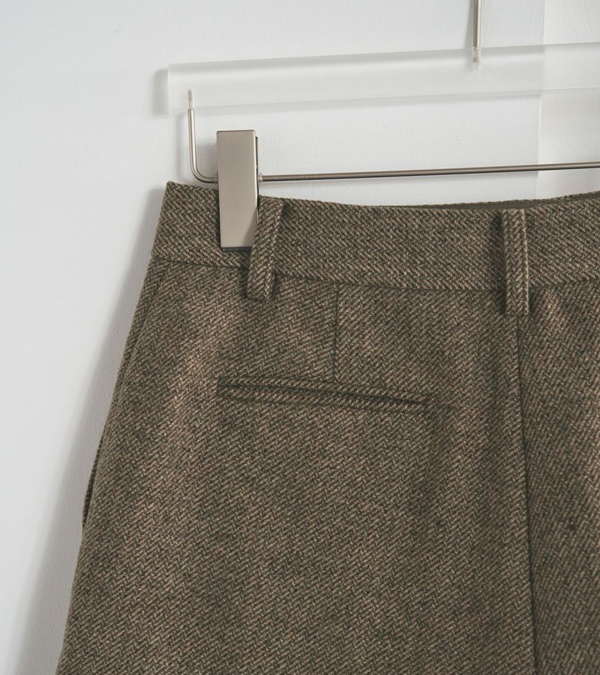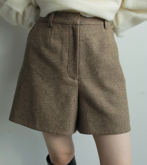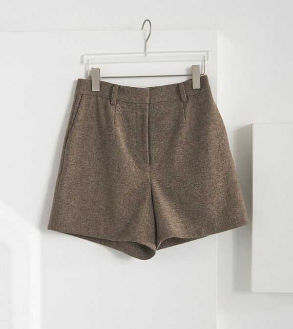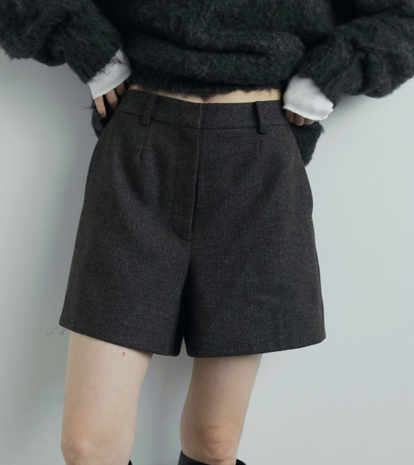 3色の糸をミックスさせた奥行きあるヘリンボーン柄生地を使用したショートパンツ。