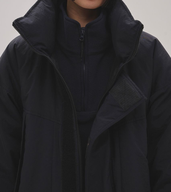 アウターの中にもすっきり収まるシルエットで冬のレイヤードスタイルや