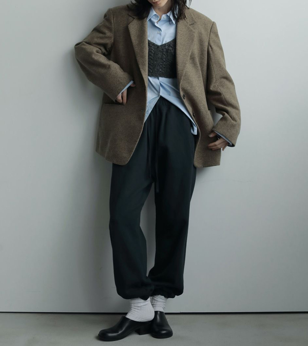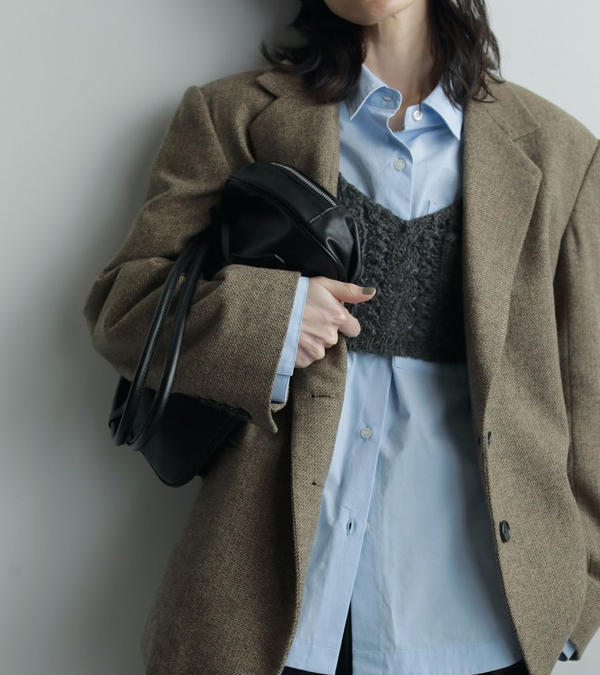 シンプルなシャツやコンパクトなトップスの上に重ねるのがおすすめ。