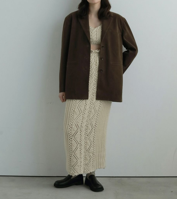 Cable Knit Skirtとの上下セットアップで着用も可愛いです。