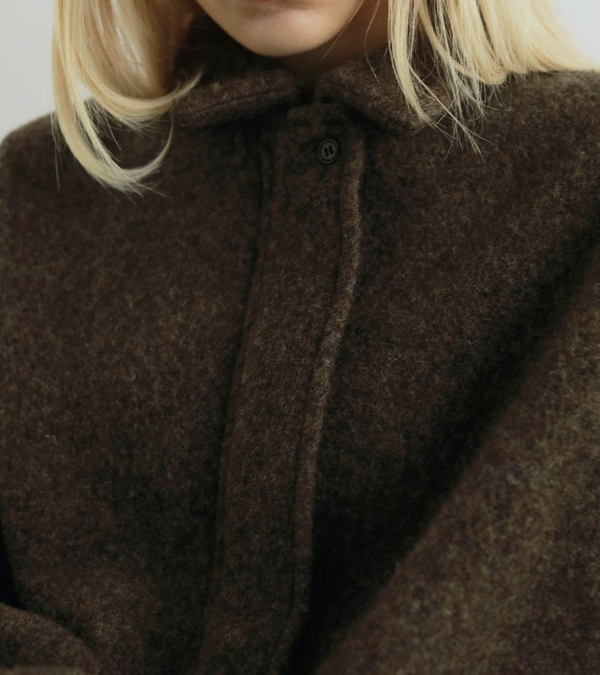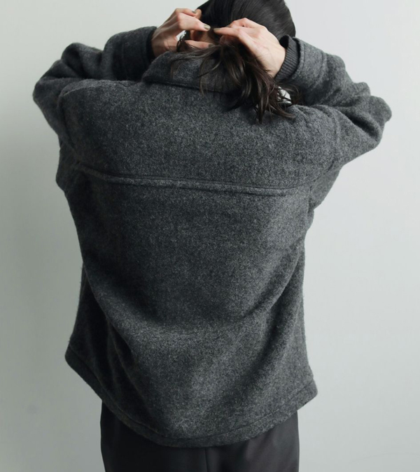 柔らかくふくらみのある暖かな素材で、メンズライクに着れるシンプルなデザイン。