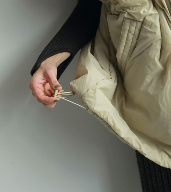 裾はゴムコード入りで、お好みのバランスに調節していただけます。