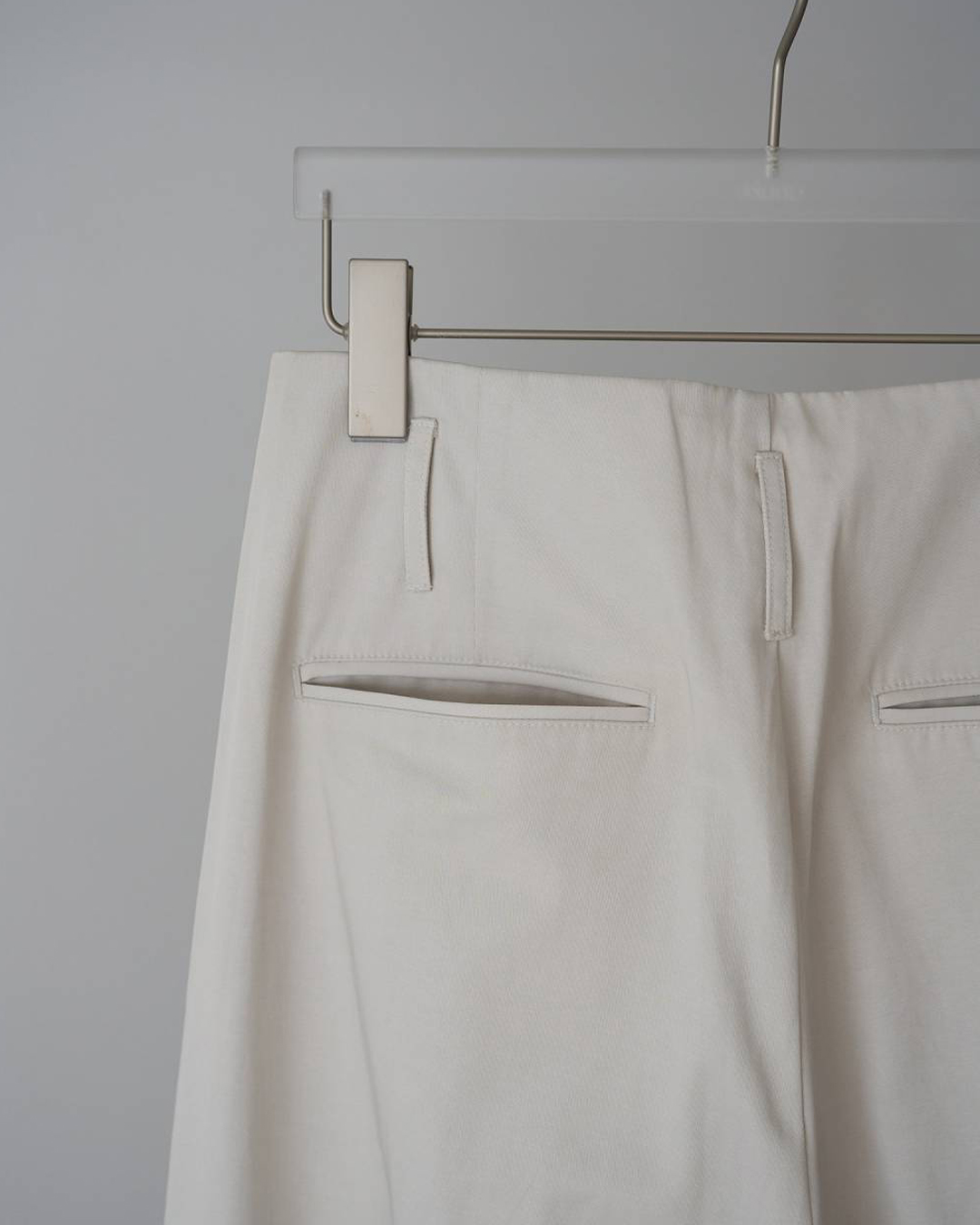 ウエストの変形タックデザインが、トップスインしたりベルトをつけた際のポイントに。
