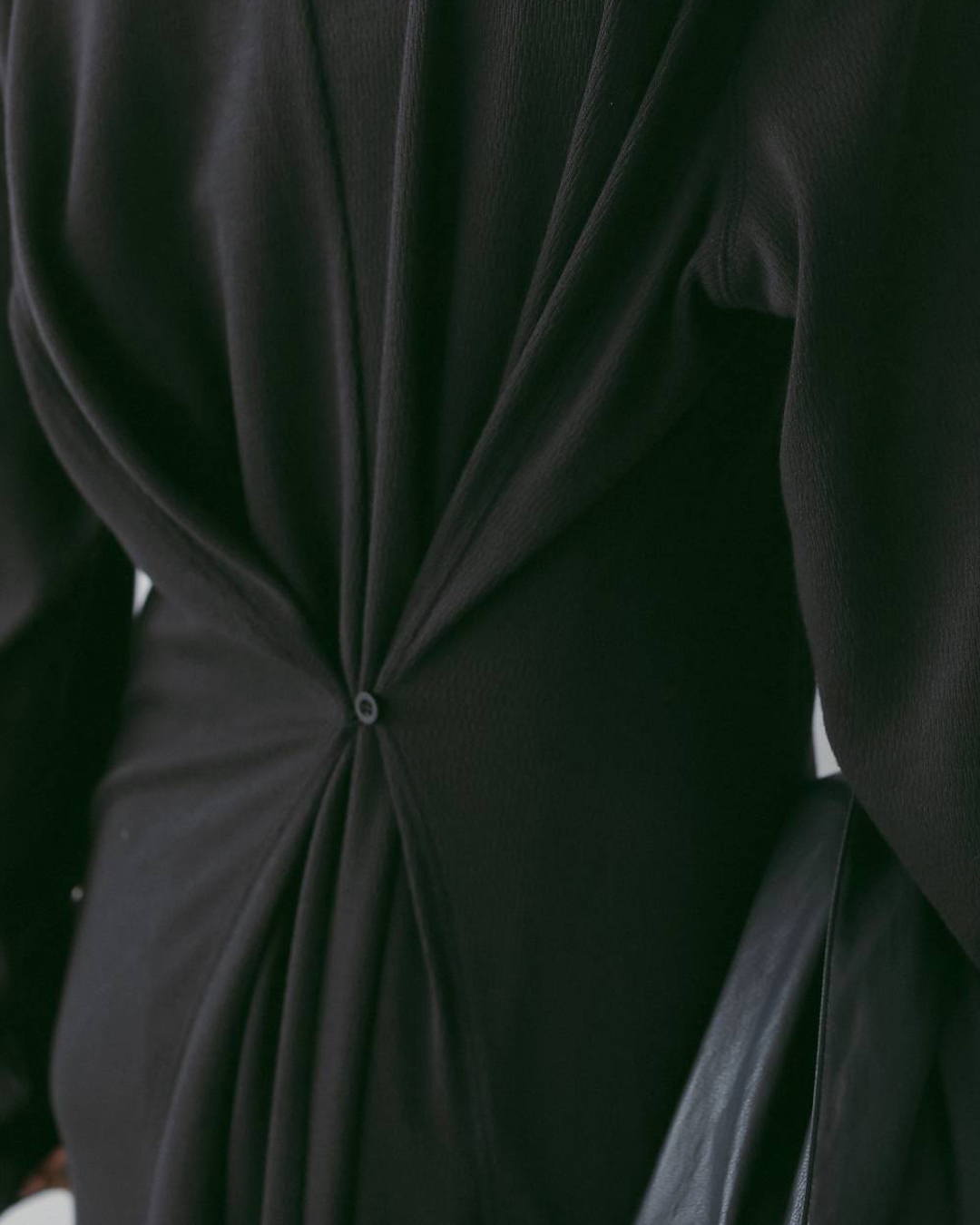 リラックス感あるシルエットながら、後ろサイドのボタンをループで留めることでシルエットに変化が生まれ