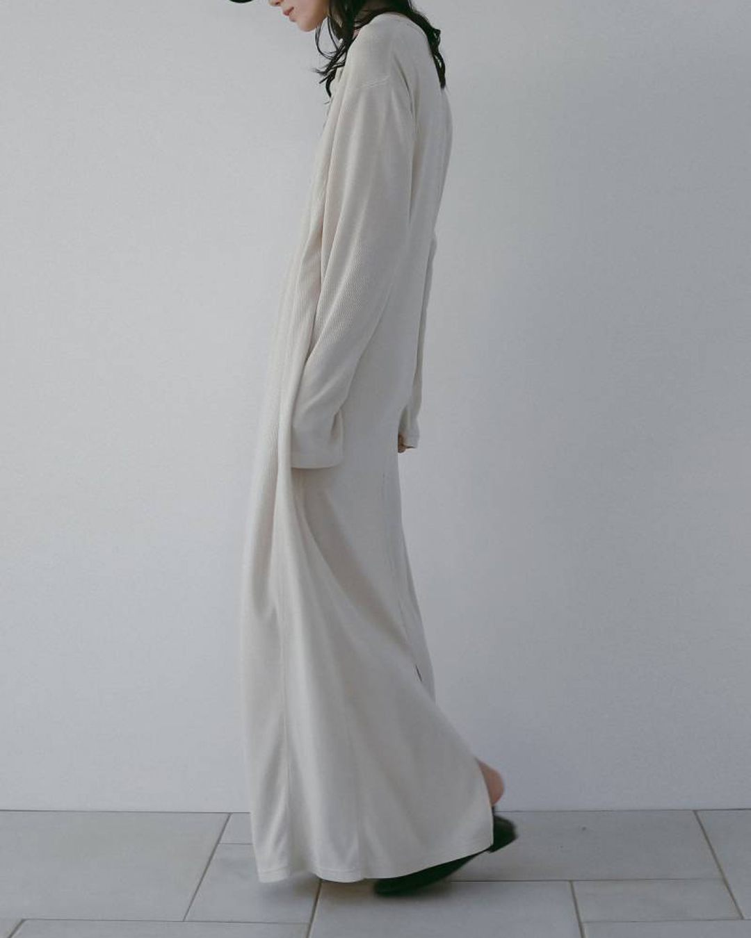 柔らかく肌触りの良いサーマル素材を使用したロングワンピース。