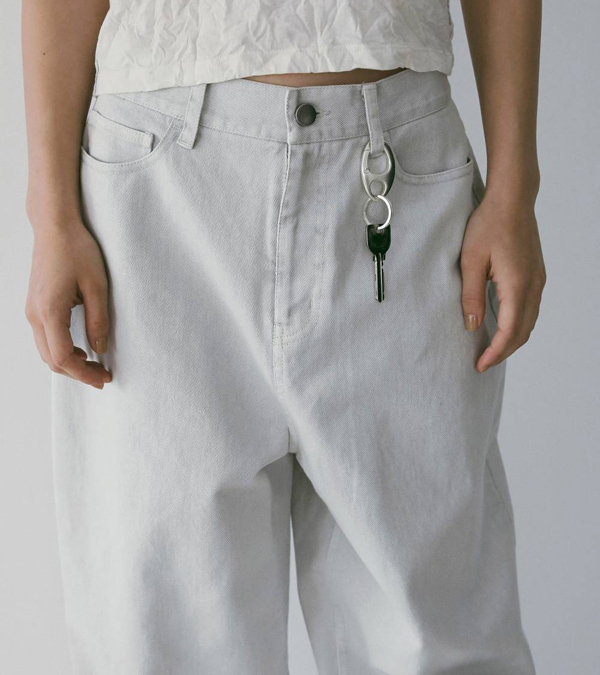 ホワイトデニムをグレーに染め、洗いをかけることで、淡く奥行きのある色味に仕上げました。